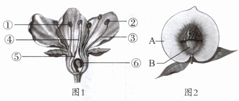 ;桃花开放后,很多蜜蜂在花丛中飞来飞去,身上常沾有一些黄色的粉末,这些粉末是由图1中的[②]
