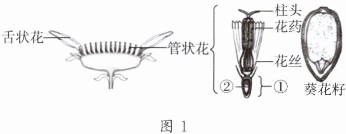 (1)葵花籽结在向日葵的花盘上,花盘上有两种花型。如图1所示,分布在边缘的______