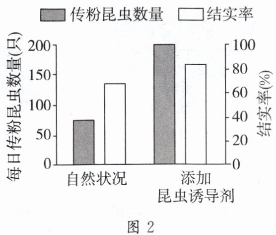 (3)葵花籽常有空瘪的现象,研究人员对其原因进行了研究,结果如图2所示。由实验结果可知,造成葵花籽空瘪的主要原因是自然状况下传粉昆虫数量______