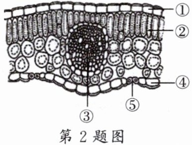 2. 如图为菠菜叶片结构临时切片。下列有关叙述不正确的是 (