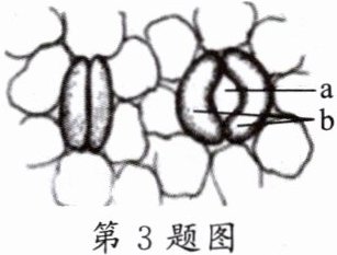 3. 如图是同学们用显微镜观察到的某植物叶表皮结构的示意图。对图中a、b所示结构叙述错误的是 (