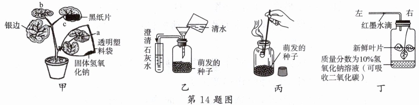 14. 为探究植物和种子的生命活动,某兴趣小组设计并进行了以下实验。下列说法错误的是 (