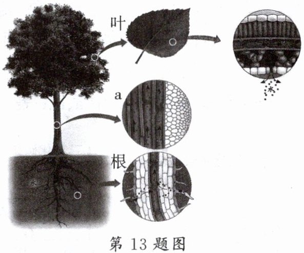13. 如图表示的是植物参与生物圈中水循环的部分过程。下列分析不正确的是 (