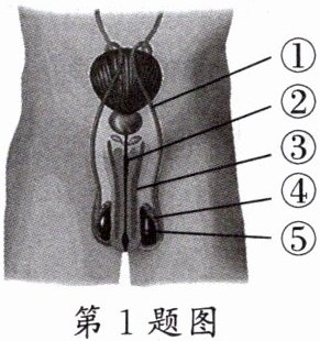 1. 如图表示男性生殖系统相关结构,下列描述错误的是 (