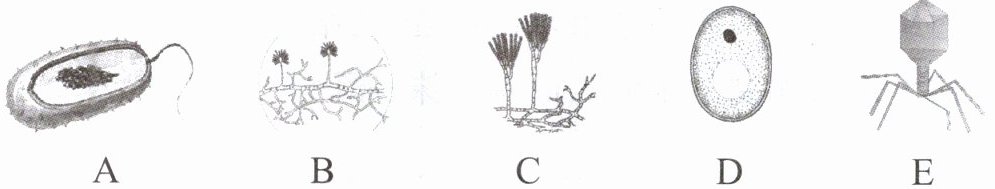 13. 依据如图所示的几种微生物的形态结构模式图,回答问题。