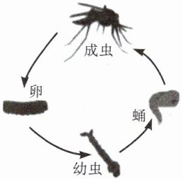5. 登革热主要由伊蚊传播,雌蚊将受精卵产在潮湿的水边或水中,发育过程如图所示。有关伊蚊的叙述错误的是 (