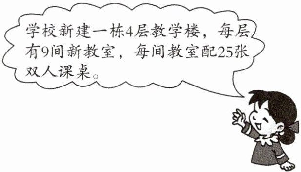 (1) 由课桌数可推算出可容纳学生数,$9×4×25×2 = 1800$(人)可知够用,再由 $1680÷2$ 算出用了 840 张课桌。