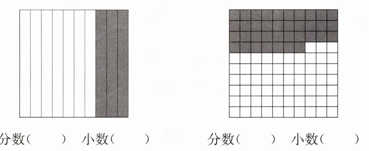 一、把下面各图中的阴影部分分别用分数和小数表示出来。