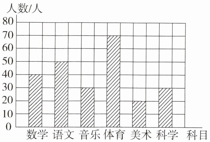 四、下面是某校四年级同学最喜欢的科目的人数统计图。