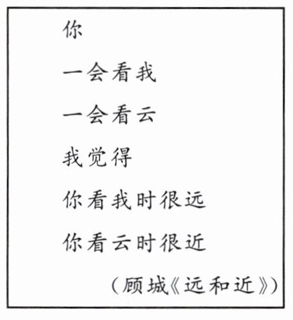 8. 读完《远和近》一文,小语用顾城的《远和近》来表达自己的阅读感悟。联系小说,结合你的思考,推测小语这样做的理由。