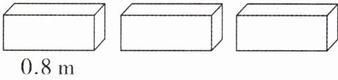 4. 如图,把一根长方体木料沿着长平均分成 3 段,每段长 0.8 m,表面积增加了$2.4m^{2}$,求原长方体木料的体积。