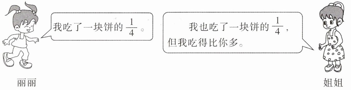 答:虽然都吃了自己的饼的$\frac{1}{4}$,但饼的大小不同,所以吃的大小会不同。