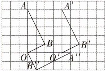 三角形 AOB 绕 O 点顺时针旋转 $ 90^{\circ} $,所以点 O 的位置不变。找出三角形 AOB 另外两个顶点 A、B 的位置;根据对应点旋转 $ 90^{\circ} $,对应线段长度不变找出顶点 A、B 旋转后的对应点 $ A'' $和 $ B'' $;顺次连接对应点,就能得到旋转后的三角形 $ A''OB'' $。
