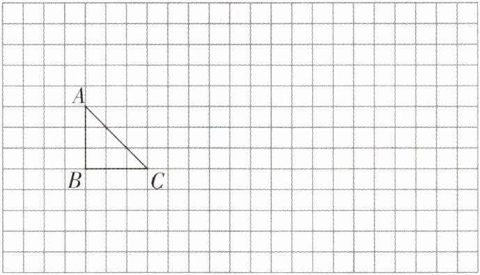 (2)将等腰直角三角形 ABC 向右平移 5 个单位后得到三角形 $ A'B'C' $,并画出三角形 $ A'B'C' $绕点 $ A' $逆时针旋转 90 度后的图形。