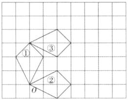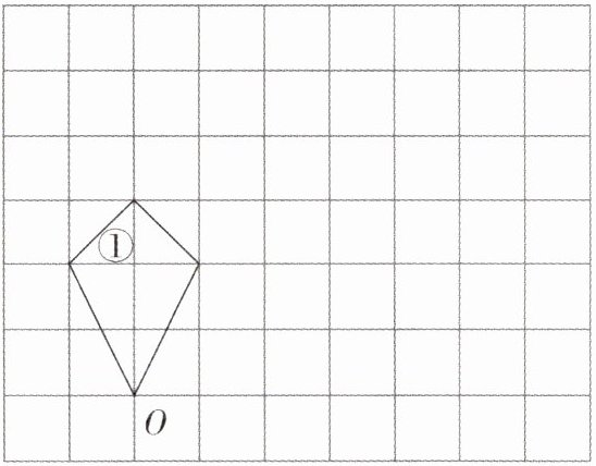 (2)请你也利用旋转的知识,在如图中画出图形①绕点 O 顺时针旋转 $ 90^{\circ} $后得到的图形②,再画出将图形②向上平移 3 格得到的图形③。