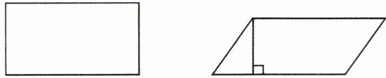 1. 用四根硬纸条钉成一个长方形,然后用两手捏住长方形的两个对角向相反方向拉,就变成了一个平行四边形(如下图)。那么这个平行四边形的高与原长方形的宽相比,(