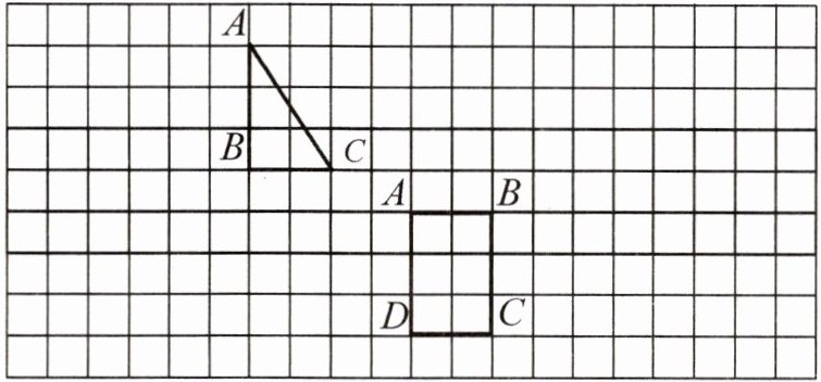 2. 将长方形ABCD先向右平移2格,再绕点B逆时针旋转90°。