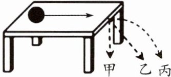 2. 如图所示,在桌面上运动的小球,冲出桌面后,它的运动路线是( )。