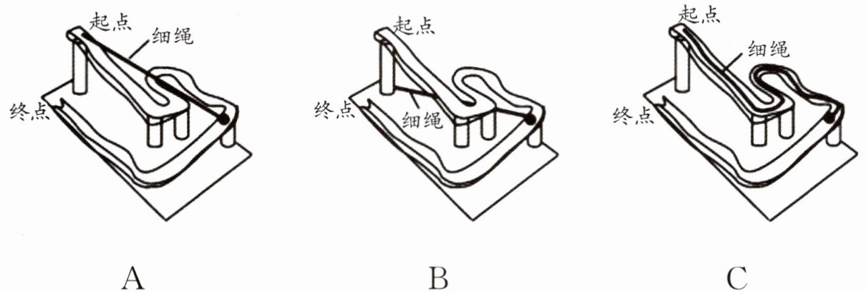 4. 描述小球在“过山车”轨道上的位置时,小科用下列方法测量小球和起点之间的距离,操作正确的是( )。