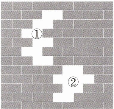 1. 下面是一面破损的墙面,比一比,这两个墙洞,哪个面积大?