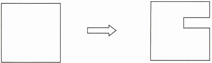 2. 从正方形中剪去一个小长方形,剩下的图形面积和周长有什么变化?