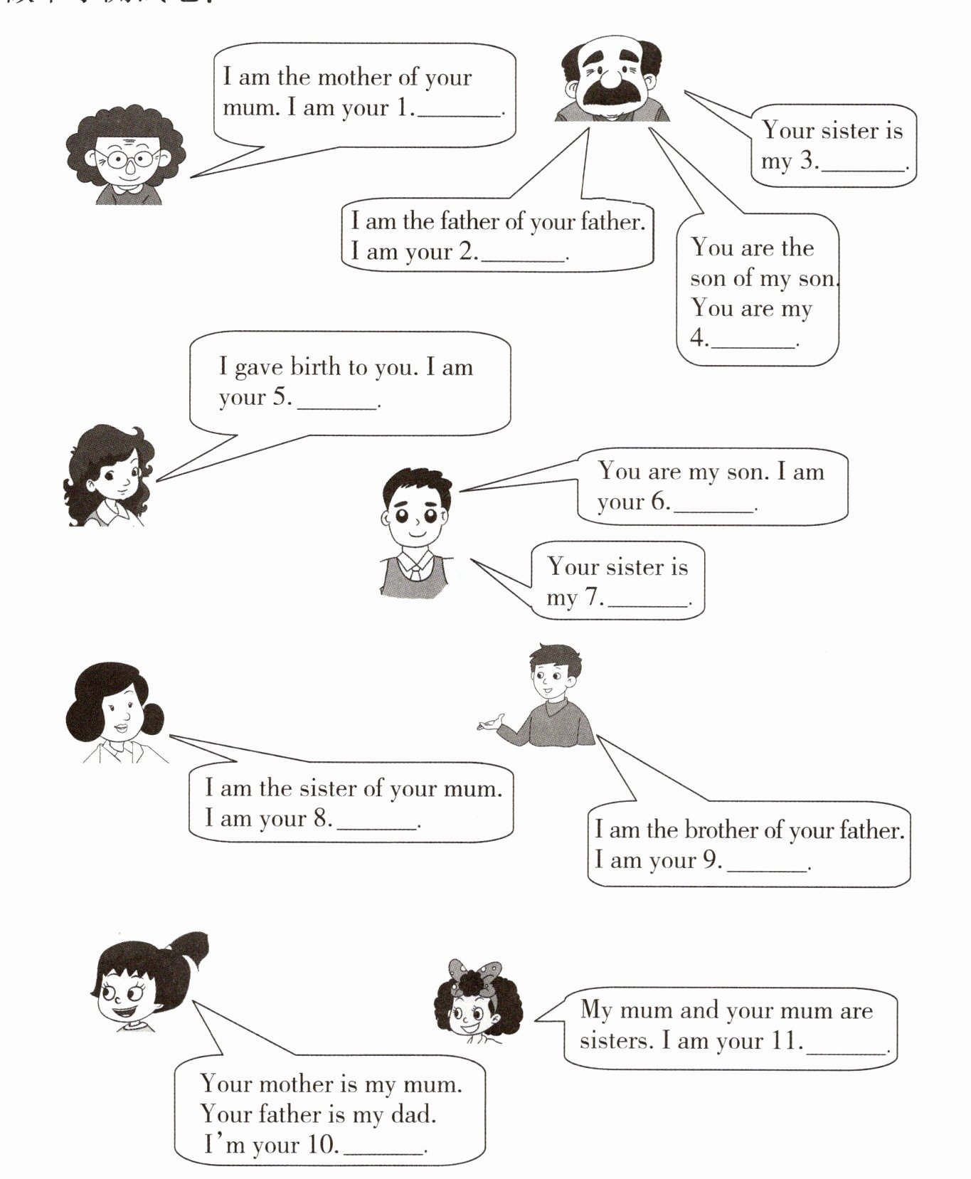 你对家庭成员间的称呼都熟悉吗?仔细看看下图,让我们一起来做个小测试吧!
