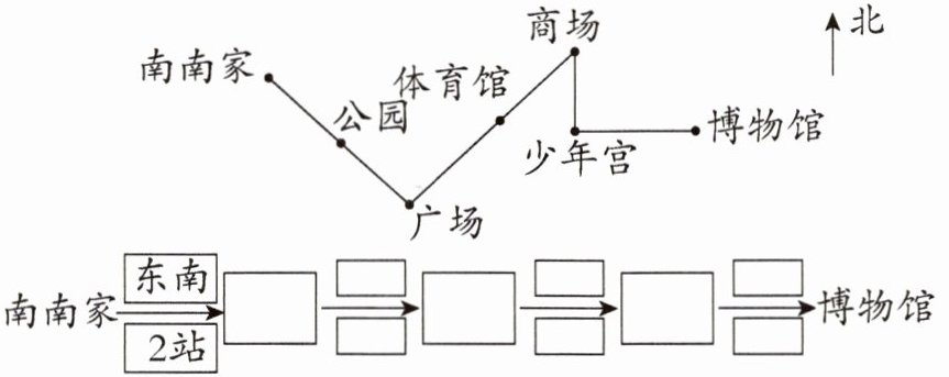 四、下面是南南从家出发到博物馆的乘车路线图。请你根据下图填一填。
