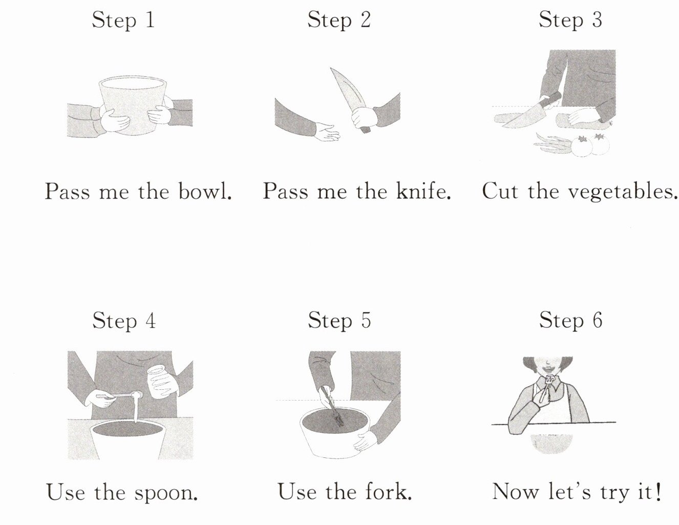 Step 6从插图看是品尝沙拉(图中人物在吃沙拉)。