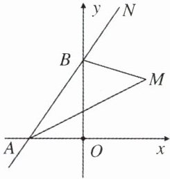 $\angle NBM=\frac{1}{2}\angle NBO=\frac{1}{2}(\angle BAO+\angle AOB)$,$\angle BAM=$$\frac{1}{2}\angle BAO$,所以$\angle AMB=\frac{1}{2}\angle AOB=45^{\circ}$;