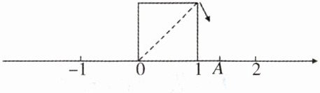 5. 如图,以数轴的单位长线段为边作一个正方形,以数轴的原点为旋转中心,将过原点的正方形的对角线顺时针旋转,使对角线的另一端点落在数轴正半轴的点$A$处,则点$A$表示的数是( )