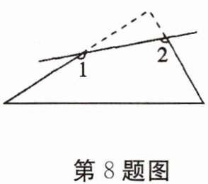 8. 如图,一个直角三角形纸片,剪去直角后,得到一个四边形,则$∠1+∠2= $.