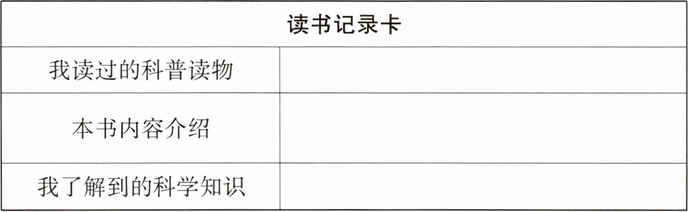 你读过哪本科普读物?书中的哪些内容比较吸引你?从这本书中,你知道了哪些科学知识?请用读书记录卡的方式记录下来吧。