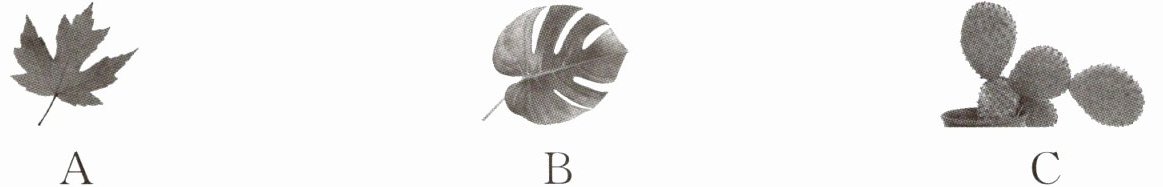 5. 观察下列三种植物的叶,可以推测最适宜在沙漠生长的是( )。