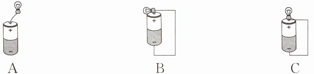 6. 小科在“点亮小灯泡”实验的装置组装过程中,发现灯泡不仅不亮,而且导线很快发热,他组装的应该是图中的( )。