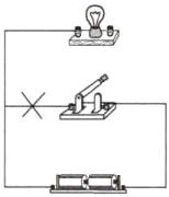 2. 小刚过来检查了电路,告诉小明只要改动其中一根导线,闭合开关,就能使灯泡亮起来。请在图中连接错误的导线上打“×”,并画出正确的导线接法。