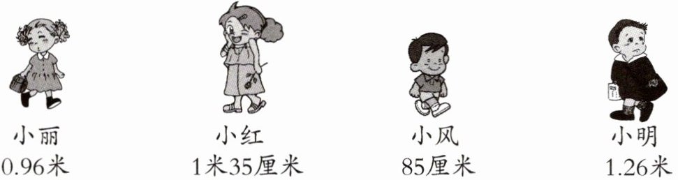 1. 请把下面几位小朋友的身高从高到低排一排。