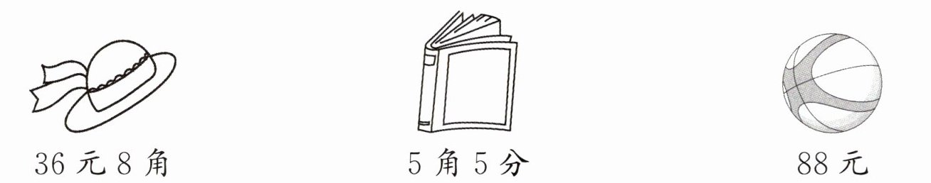 丽丽想趁着暑假去海边游玩,要买上图中的帽子,她至少需要带( )(填整数)元钱;丽丽的妈妈只有若干张十元的人民币了,她应该给丽丽( )元钱。