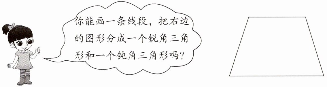 你能画一条线段,把右边的图形分成一个锐角三角形和一个钝角三角形吗?