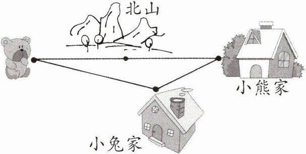 走经过北山的那条路最近。理由:三角形任意两边的和大于第三边。