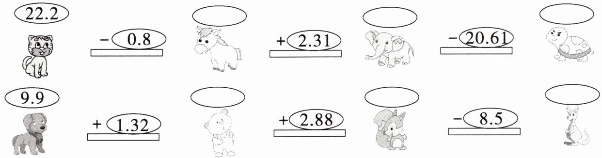 $5.45 + 0.78 - 1.73$ $58.9 - (8.6 + 4.33)$ $15.34 - (5.07 - 2.18)$
