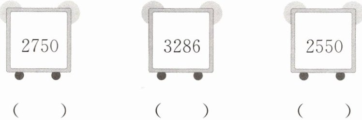 2. 下面哪个数能同时被2,5,3整除?在那个数下面的( )里画“√”。