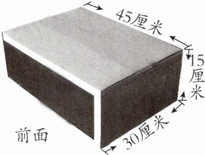2. 如右图所示,这个纸盒的上面是( )形,长( )厘米,宽( )厘米,和它相对的面是纸盒的( )面。它的右面是( )形,长( )厘米,宽( )厘米,和它大小相同的面是( )面。有( )个面的长是45厘米,宽是15厘米。