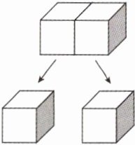 3. 把一个长方体铁块,截成两个完全相同的正方体(如图)。两个正方体的棱长总和比原来长方体的棱长总和( )。