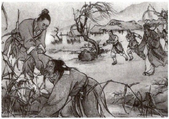 那邻居飞奔到集上,一地里寻不见;直寻到集东头,见范进抱着鸡,手里插个草标,一步一踱的,东张西望,在那里寻人买。邻居道:“范相公,快些回去。你恭喜中了举人,报喜人挤了一屋里。”范进道是