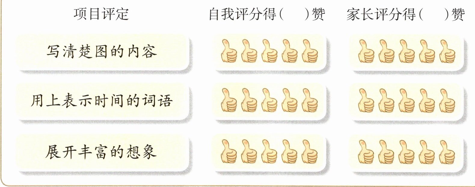 2.能用上表示时间的词语,把多幅图的内容连起来。