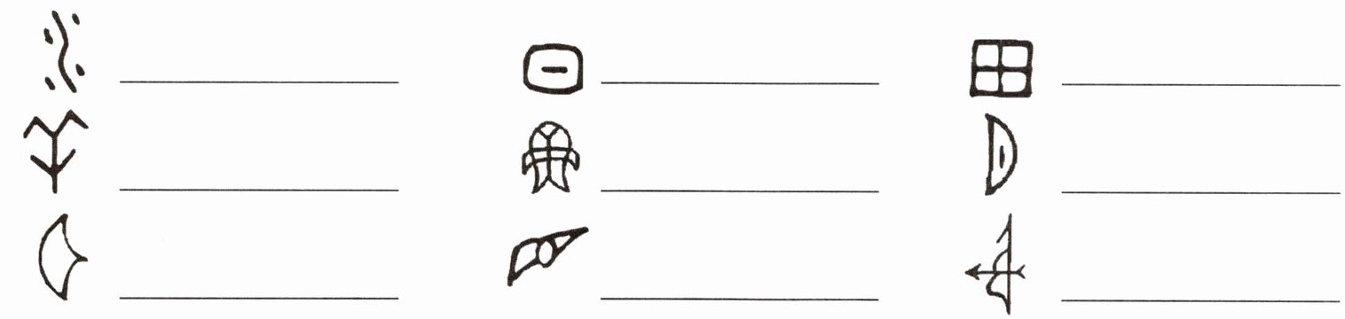 解析 本题考查学生整体感知和形成解释的能力。甲骨文都是象形文字,只要用心,仔细观察图片,不难写出现代汉字。