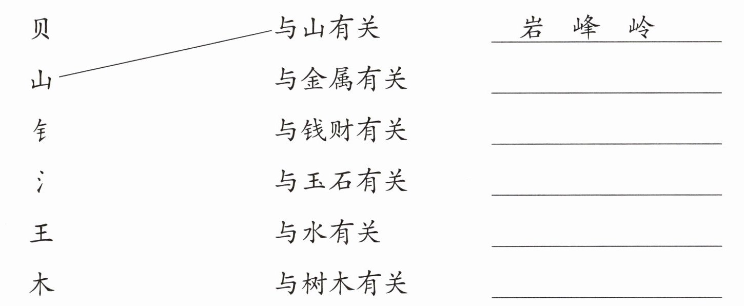 4 联系上一题画横线的句子,想一想以下用“山”做偏旁的字表示什么含义。(填序号)