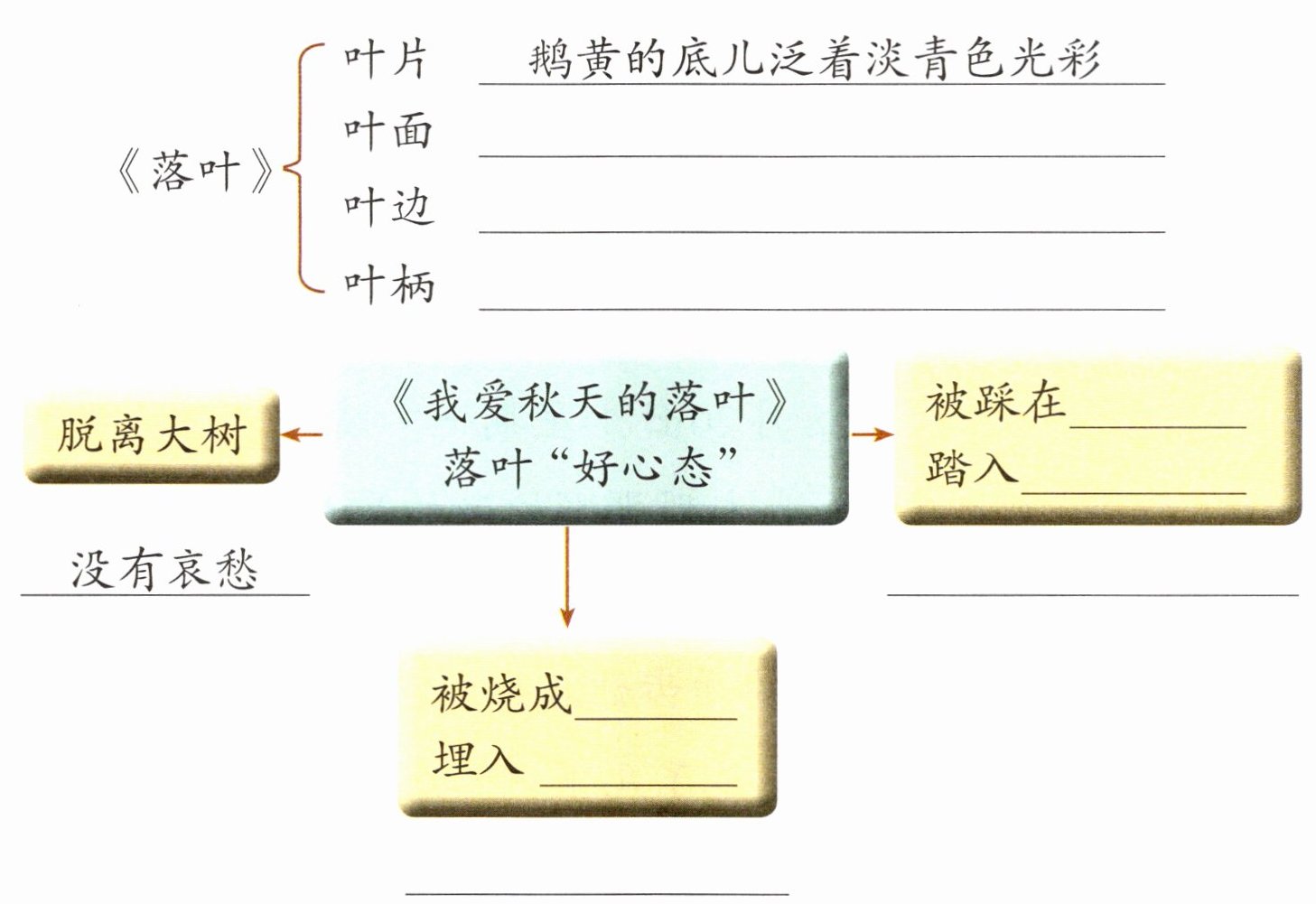 4 读了这两篇文章,你对落叶有哪些新的认识?你想用哪些诗句来赞美它们呢?