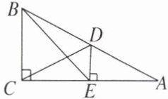 6. 如图,在$Rt\triangle ABC$中,$\angle ACB = 90^{\circ}$,点$D是斜边AB$的中点,$DE \perp AC$,垂足为$E$,若$DE = 2$,$CD = 2\sqrt{5}$,则$BE$的长为