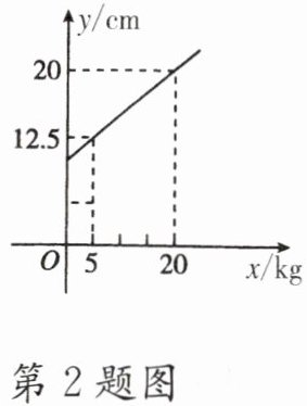 2. 弹簧的长度$y(cm)$与所挂物体的质量$x(kg)$的关系是一次函数,图象如图所示,则弹簧不挂物体时的长度是(